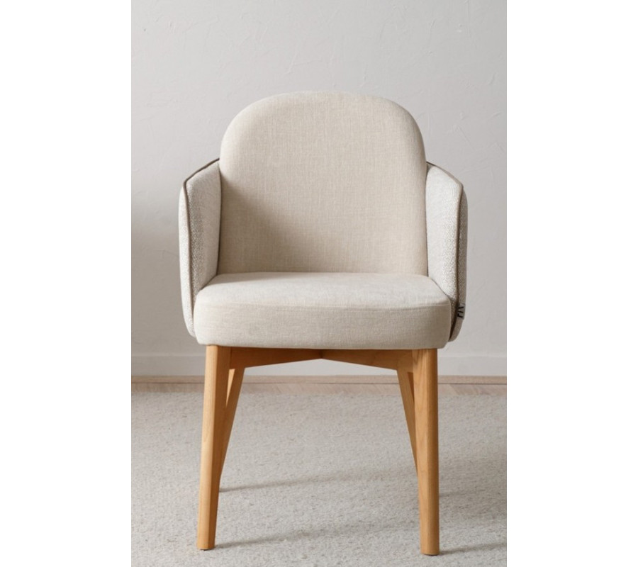 Cadeira em tecido e madeira maciça de carvalho com acabamento natural