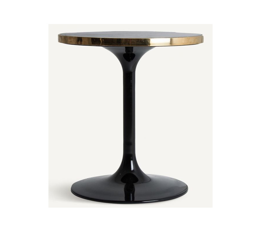Mesa de bar com base de ferro e superfície em mármore revestido em aço