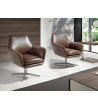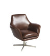 Swivel armchair covered in cowhide leather and polished stainless steel legs.