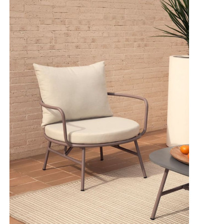 Armchair in steel treated with a mauve finish suitable for outdoors.