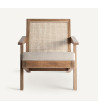 The armchair stands out for its art deco design and combination of materials. Mango wood combines with beige MDF in a wraparound silhouette that provides warmth and style