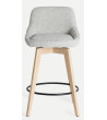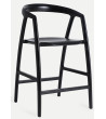 Black leather bar stool with a metal tripod base. Its vintage industrial style stands out in modern bars or kitchens, providing a decorative and functional touch. The padded seat with decorative lines offers comfort and style.