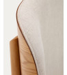 Bed made of ash plywood and solid wood slatted bed base. Upholstered headboard with fabric.