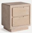 The DREKE bedside table, with its modern design and natural walnut veneer and synthetic leather frame, provides a sophisticated look to any room.