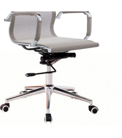 Office chair with swivel gas lift mechanism with tilt, rocking and locking effect, height adjustment by gas lift system and mesh upholstery