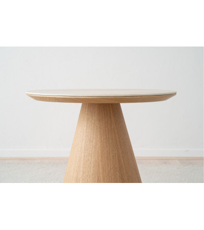 Side table made of ash wood with a slightly textured beige tarvertine ceramic top