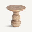 Side table in suar wood, with a sculptural design and striking geometric lines. The robust surface contrasts with the carved curves, highlighting the natural grain and warm tones of the wood, ideal for modern and elegant environments.