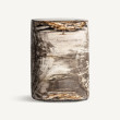 This side table, made of pine wood, stands out for its simple design and black finish. Its compact shape and organic texture make it a functional piece with a decorative presence.