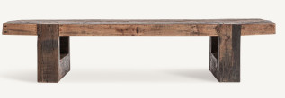 The Brutalist Center Table, made of saltwood, is a compact sculpture with thick legs supporting a solid disc. Resounding and symbolic, it conveys calm and timeless strength.