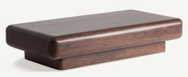 This rustic-style table, made of reclaimed brown wood with an aged finish, combined with travertine, brings a calm and timeless strength.