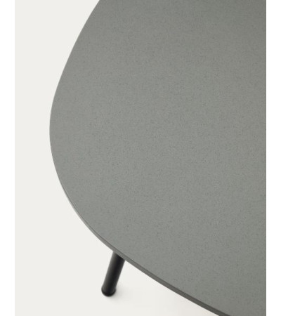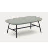 Coffee table with treated steel base for covered outdoor areas. Fiber cement top.