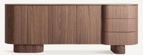 O APARADOR AKSARAY mistura a elegância do art deco com a nobreza do carvalho. Seus volumes suaves e toM criam uma presença sofisticada e equilibrada.