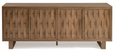 O APARADOR ALANTRA III em carvalho com interior de carvalho natural e duas portas de vidro para deixar seus pertences ou objetos decorativos olhar.