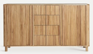 APARADOR THIERS em madeira Mindi, ideal para salas de jantar ou quartos modernos. Sua estrutura inclui portas e uma base em madeira natural, proporcionando um contraste elegante.