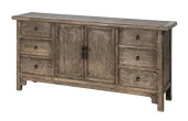 Aparador em madeira de pinho de estilo clássico, com portas e gavetas que oferecem excelente arrumação. Destaca-se pelo seu design elegante e intemporal, ideal para salas de jantar ou estar. Uma peça robusta que alia funcionalidade e charme tradicional.