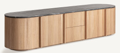 Esta base TV de estilo contemporâneo, feito de madeira de carvalho em marrom claro, combinado com mármore preto, este móvel acrescenta um toque moderno e sofisticado à sua sala de estar.
