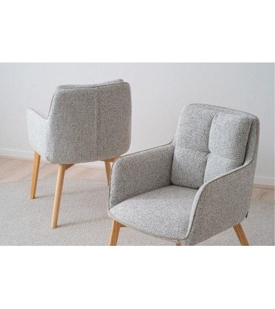 Cadeira em madeira de carvalho com acabamento natural e tecido