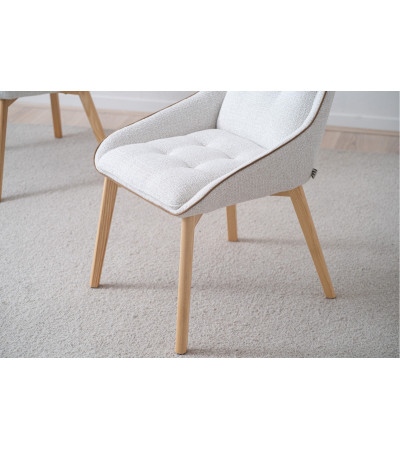 Cadeira em tecido e madeira maciça de carvalho com acabamento natural