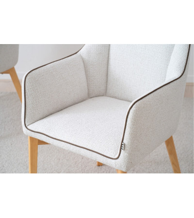 Cadeira em madeira maciça de carvalho com acabamento natural e tecido
