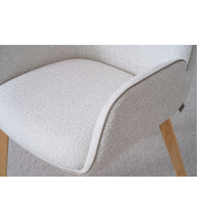 Cadeira em tecido e madeira maciça de carvalho com acabamento natural