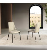 Cadeira de design moderno com assento e encosto estofados em couro sintético cor de areia e as suas pernas em aço inoxidável , com um estilo vanguardista mas intemporal