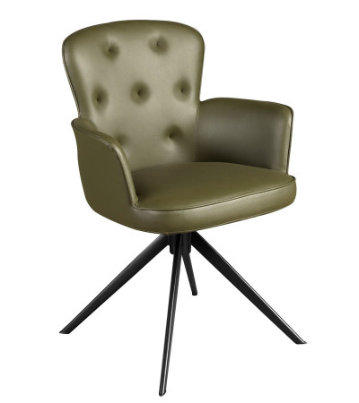Cadeira com braços de design moderno com assento e encosto estofados em couro sintético e as suas pernas em aço inoxidável cromado em cor de ouro rosa com um estilo vanguardista, mas intemporal