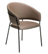 Cadeira de design moderno com assento e encosto estofados em pele sintética e as suas pernas em aço inoxidável