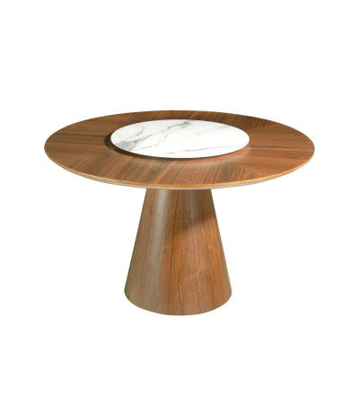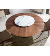 Mesa redonda em folha de madeira de nogueira e peça central giratória em cerâmica