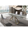 Mesa de jantar extensível retangular com tampo em vidro temperado e pés em aço inoxidável