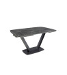 Mesa de jantar extensível oval com tampo em mármore de porcelana com acabamento fosco com os seus pés e base de aço inoxidável