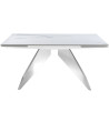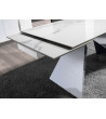 Mesa de jantar extensível retangular com tampo em mármore com acabamento brilhante e pés em aço inoxidável