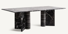 A MESA DE JANTAR PÁTRIA, é um pilar de basalto: robusto e solene, com uma ampla superfície apoiada por uma única coluna central que evoca a força da terra vulcânica. Seu design monumental, com linhas puras e geometria imponente, transforma a sala de jantar em um espaço de contemplação e caráter atemporal.