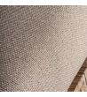 Sofá revestido com tecido bege com base em madeira de teka reciclada.