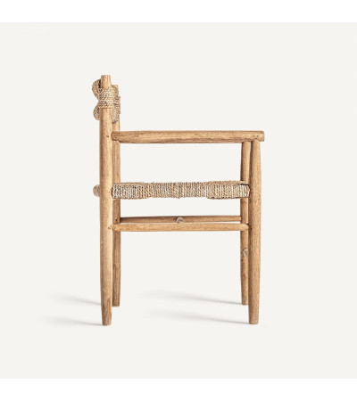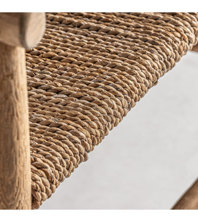 Cadeira com estrutura de madeira de teka e fibra natural