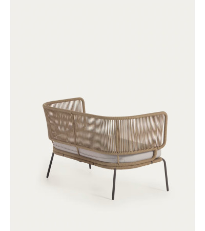 Sofá de 2 lugares com estrutura de aço e encosto em corda.Encosto artesanal. O trançado da corda é feito à mão.Apto para uso interior ou em exteriores.
