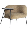 Cadeirão com design acolhedor e envolvente, estofado em tecido e pernas em ferro