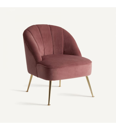 Poltrona com estrutura de ferro e revestida com tecido aveludado.