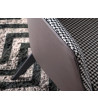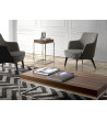 Poltrona revestida com tecido. Encosto revestido em couro sintético e estrutura das pernas em aço pintado na cor preta.