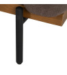 Poltrona revestida em tecido, detalhes em madeira e pés em metal.