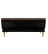 Sofá cama em tecido combinado com pés em madeira de eucalipto.
